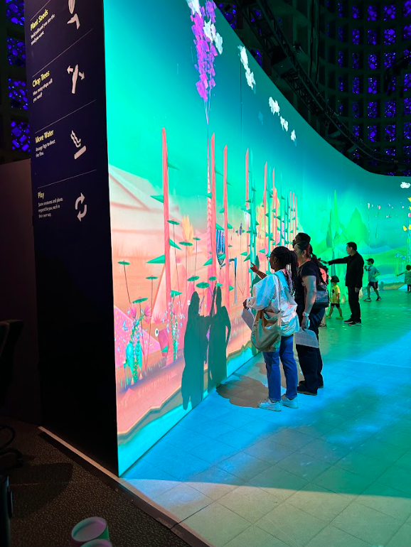 I joined SUNY Purchase College students Lee Albino, Taneer Middleton, Michele Miller, Jovanna Sampayo, and Risa Tirado inside the NySCI Great Hall that houses Connected Worlds. Upon entering the Great Hall, I was surprised at how contemporary the entire exhibit still felt. Within the exhibit there were groups of young children, families, and museum goers.