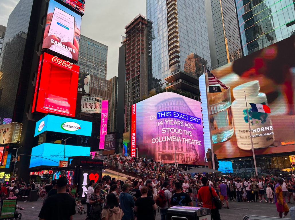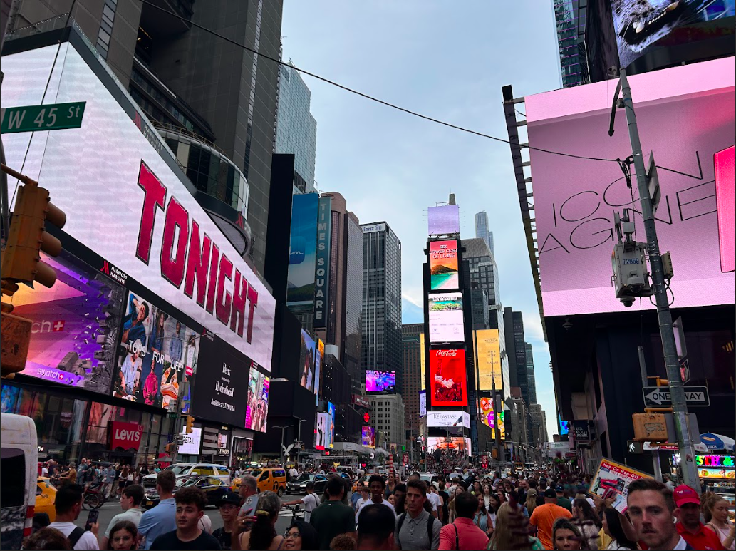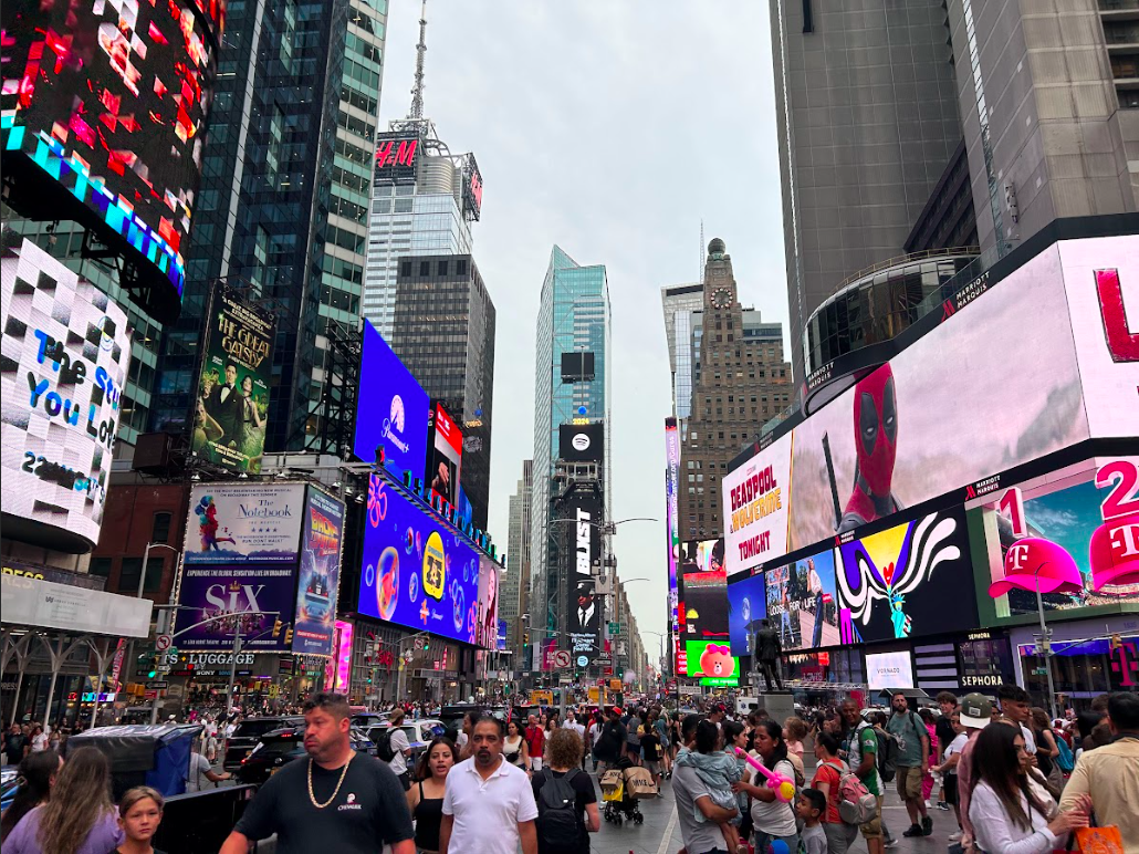 I exited the subway station to be washed over by humanity, humidity, and media. I have been here many times before on research, but this time was particularly overwhelming. I personally had not returned since the pandemic. Times Square was teeming with visitors. People, tourists, have come back to NYC and they are interested in being public, being seen, exploring.
