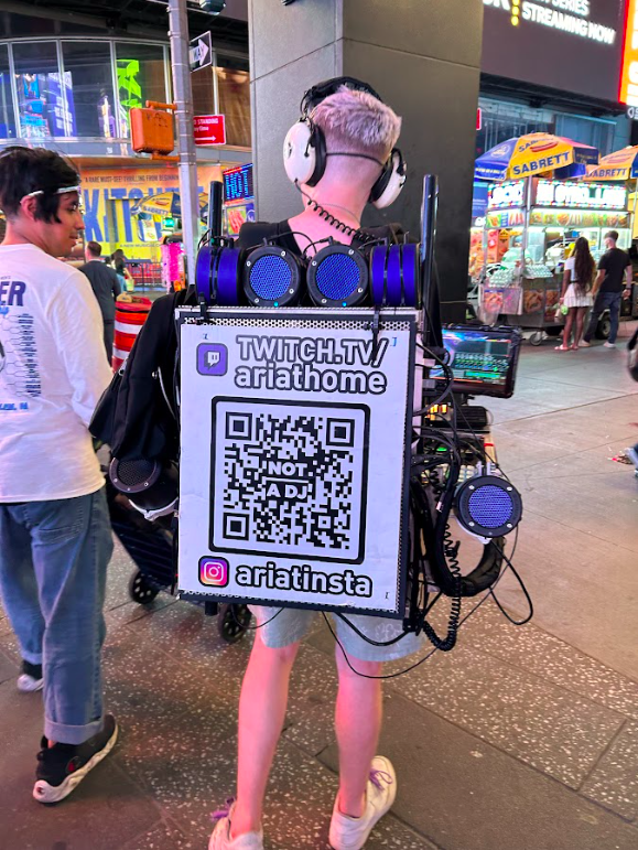 Public interactives are ever evolving. In this case, a livestreaming electronic musician, an emergent form of technocultural wandering bard.